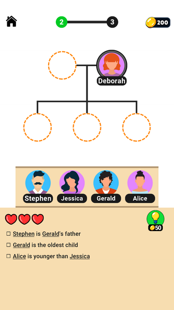家谱是一款引人入胜的益智游戏,能在您的iPhone上让您沉浸其中数小时。游戏的目标是根据提供的提示将家庭成员放入相应的槽位中,以完成家庭。